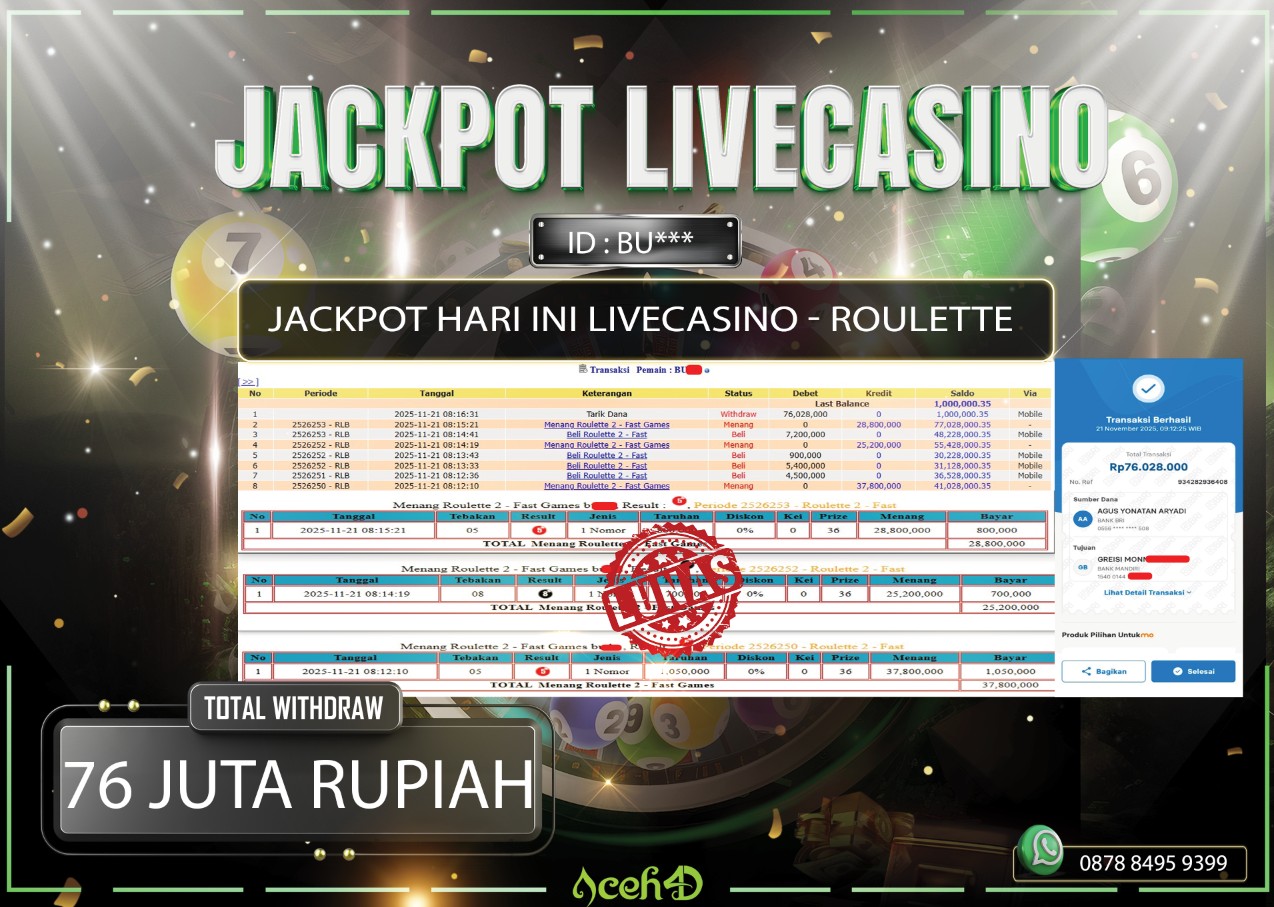 JACKPOT LIVECASINO DARI MEMBER SETIA ACEH4D πŸ’ΈπŸ’Έ