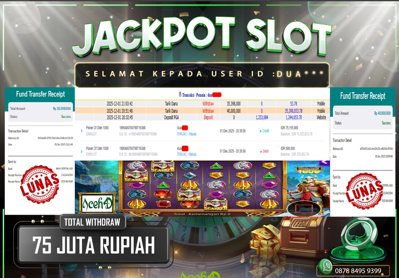 πŸ”₯πŸ”₯ JACKPOT HARI INI,SENIN 01-12-2025 πŸ”₯πŸ”₯ JACKPOT SLOT DARI MEMBER SETIA ACEH4D πŸ’ΈπŸ’Έ
