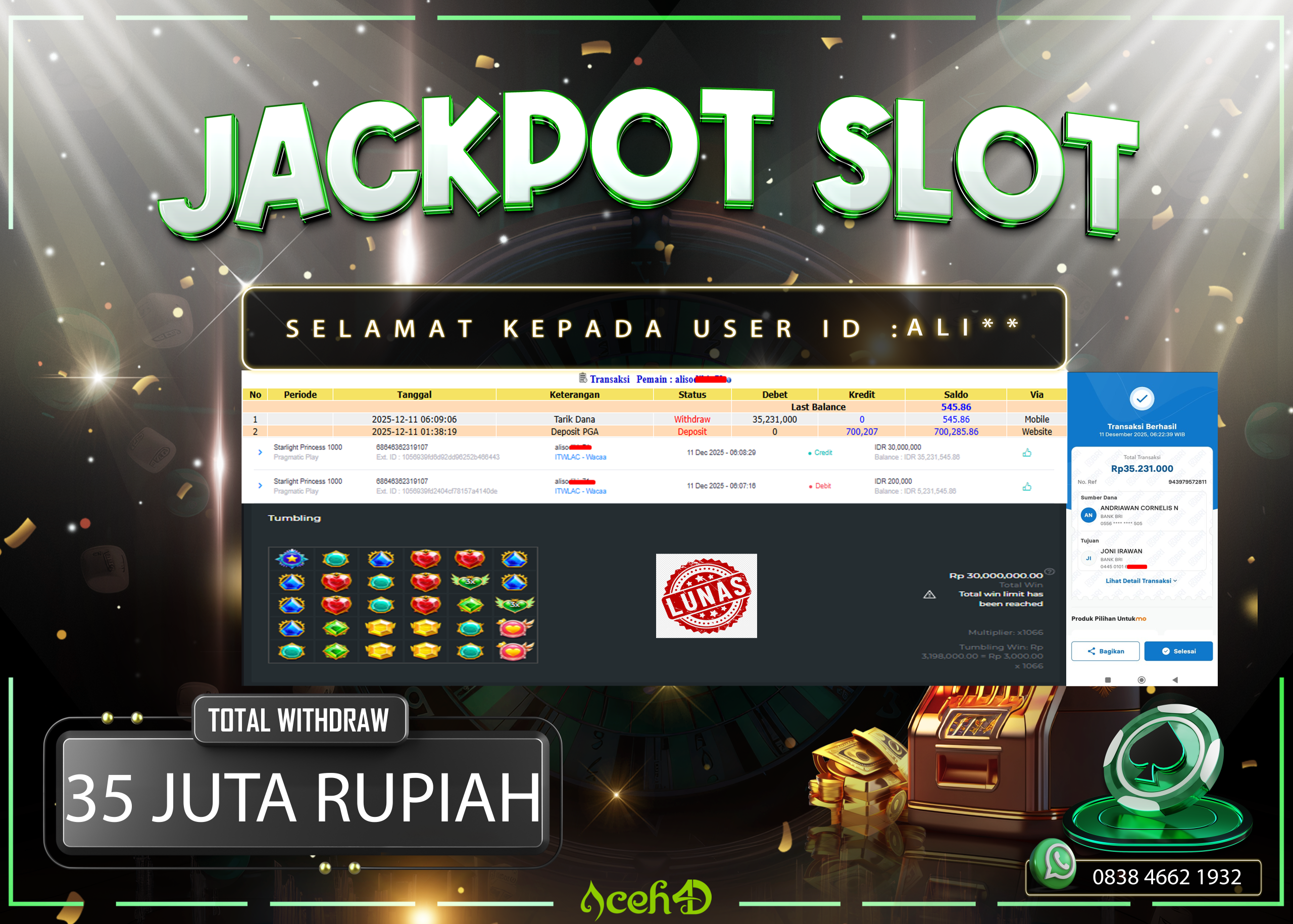 JACKPOT SLOT DARI MEMBER SETIA ACEH4D πΈπΈ